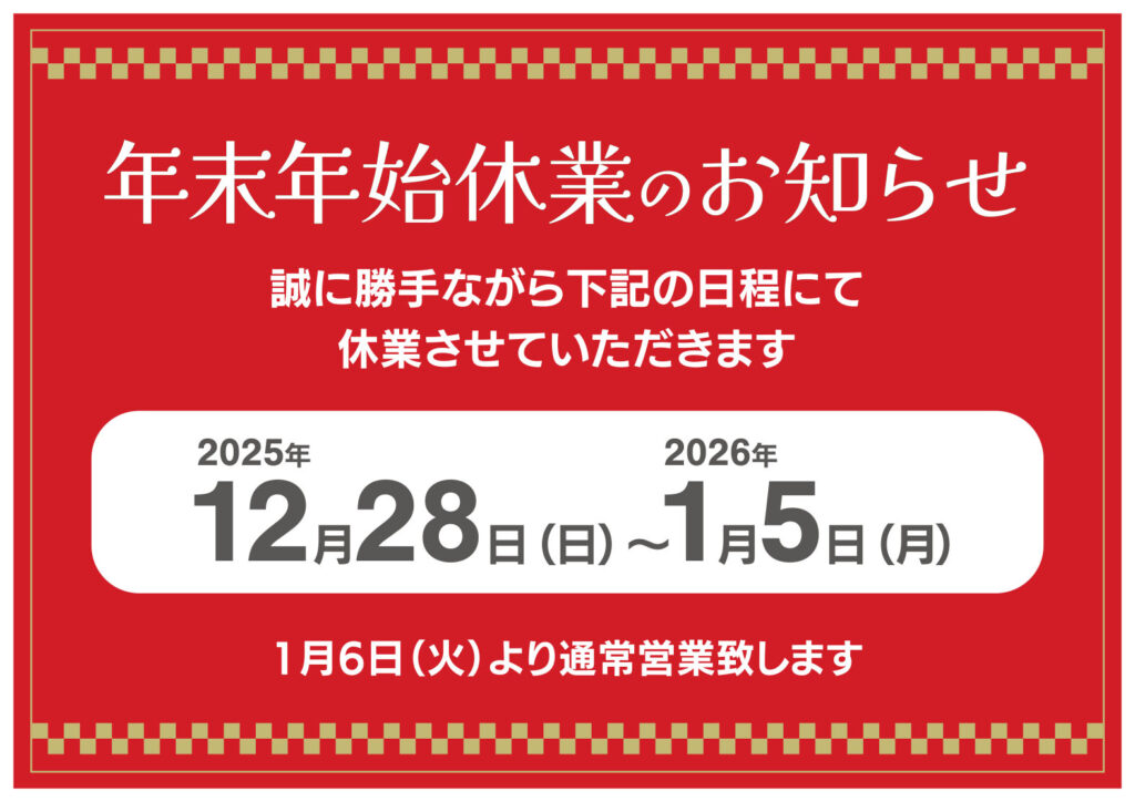 ※年末年始の休業期間につきましては、上記画像の通りとさせていただきます。