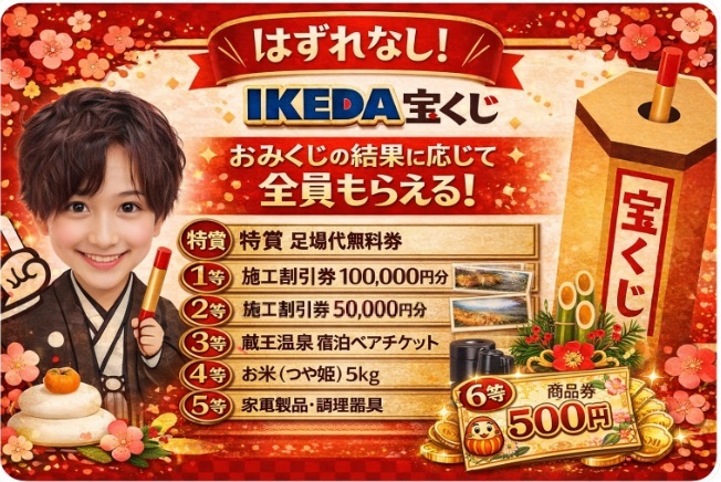 相談だけでも大歓迎です。1/31(土)・2/1(日)、IKEDAショールームでお待ちしております。