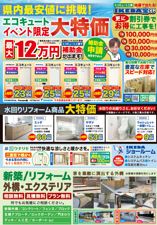 相談だけでも大歓迎です。1/31(土)・2/1(日)、IKEDAショールームでお待ちしております。