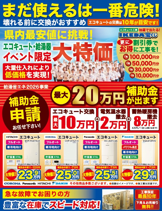 住宅塗装・エコキュート特価イベントを開催します。