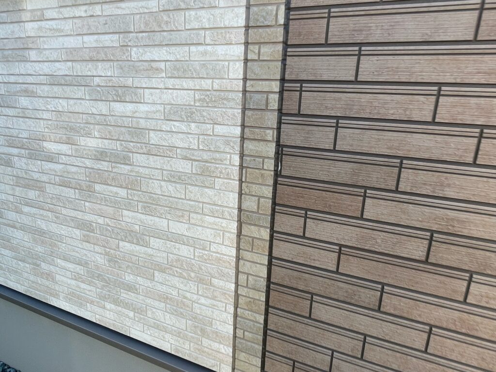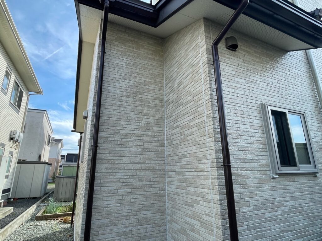 築10年に満たないお家ですが、タイルの美しさをそのままに、さらに長持ちさせるための予防メンテナンスとしては、理想的なタイミングでした💡外壁は無機クリアで塗装しています。意匠性の高いサイディングの魅力をそのままに、艶が出ることで更に引き立ちます😆👏✨ 外壁の色に合わせてシーリングの色も3色使用しています🙌雨樋と付帯部が同色になったところも、統一感があって素敵ですね😉