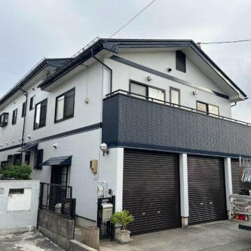 屋根はシリコン2回塗り、外壁はフッ素3回塗りプランで施工しました。何通りかのカラーシミュレーションをして、シンプルかつおしゃれな外観になりました。