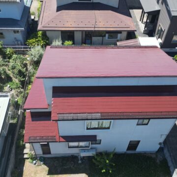 山形市の一般住宅の屋根、木部塗装工事です。屋根用のリアルハイブリッドシリコン樹脂塗料は顔料及びラジカル吸着安定剤(HALS)